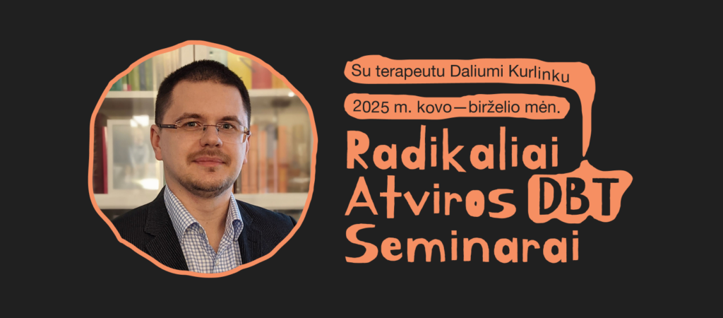 Kviečiame į 2025 m. kovo 13 d. prasidėsiančius radikaliai atvira dialektine elgesio terapija grįstus seminarus su psichologu-psichoterapeutu Daliumi Kurlinku.